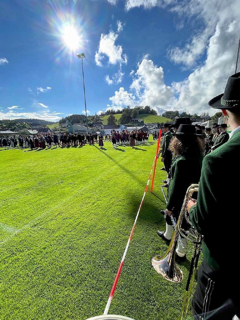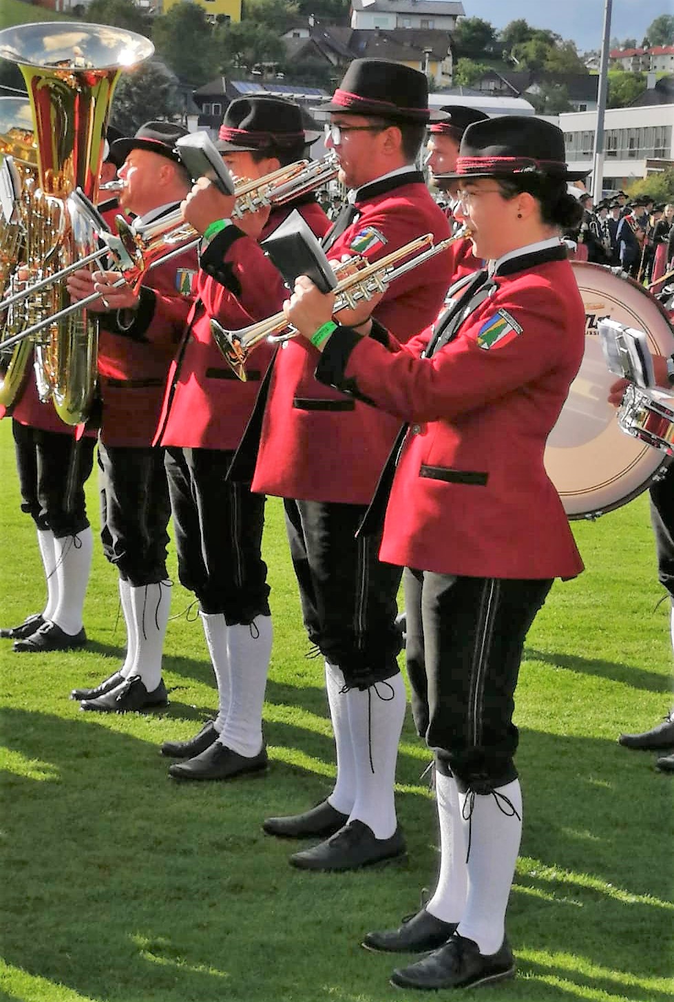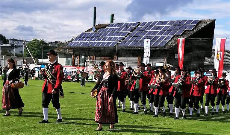 Unser Stabführer Markus Käferböck präsentierte mit dem "Arosa Marsch" den Musikverein Dorfstetten, bei unseren Nachbarn, und beim anschließenden Gesamtspiel wurde von ~ 700 anwesenden Musikern der Festakt musikalisch umrahmt.